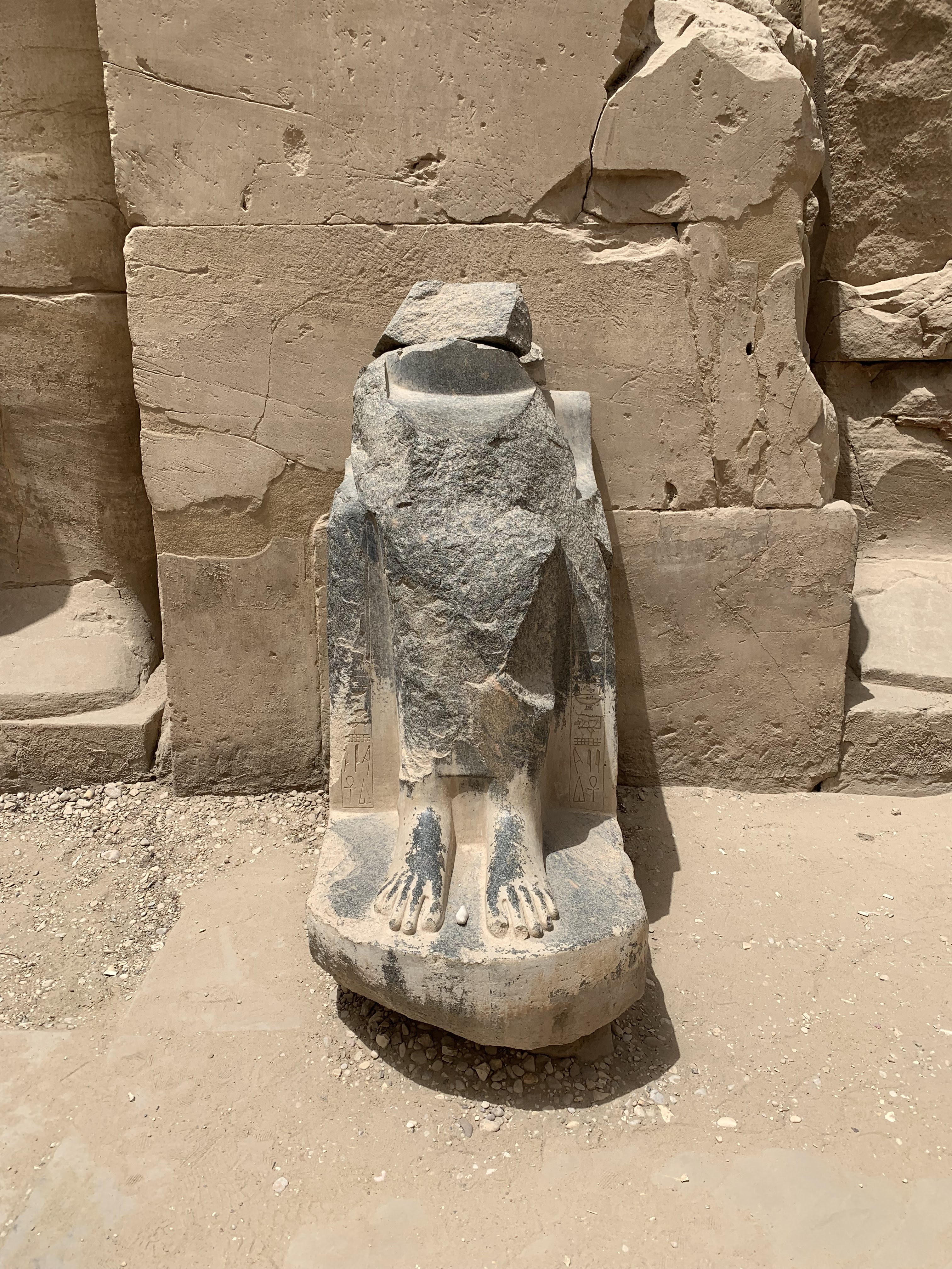 The color on the columns would have been found on everything inside the temple. Our guide was an Egyptologist who worked with the univ. ofArizona when they were here to study and do research and also with the University of Chicago. He has a masters in Egyptian studies and has studied the directional path of the temple by photographing and studying the sunrise and sunset over a five year period to discover that on /or near the winter solstice the sunrises directly over the alter of this temple and at sunset it shines straight through the column room to the alter. Therefore this temple is considered an east/west one. He received his PHD for a study of the physical/metaphysical heart in ancient Egyptians.